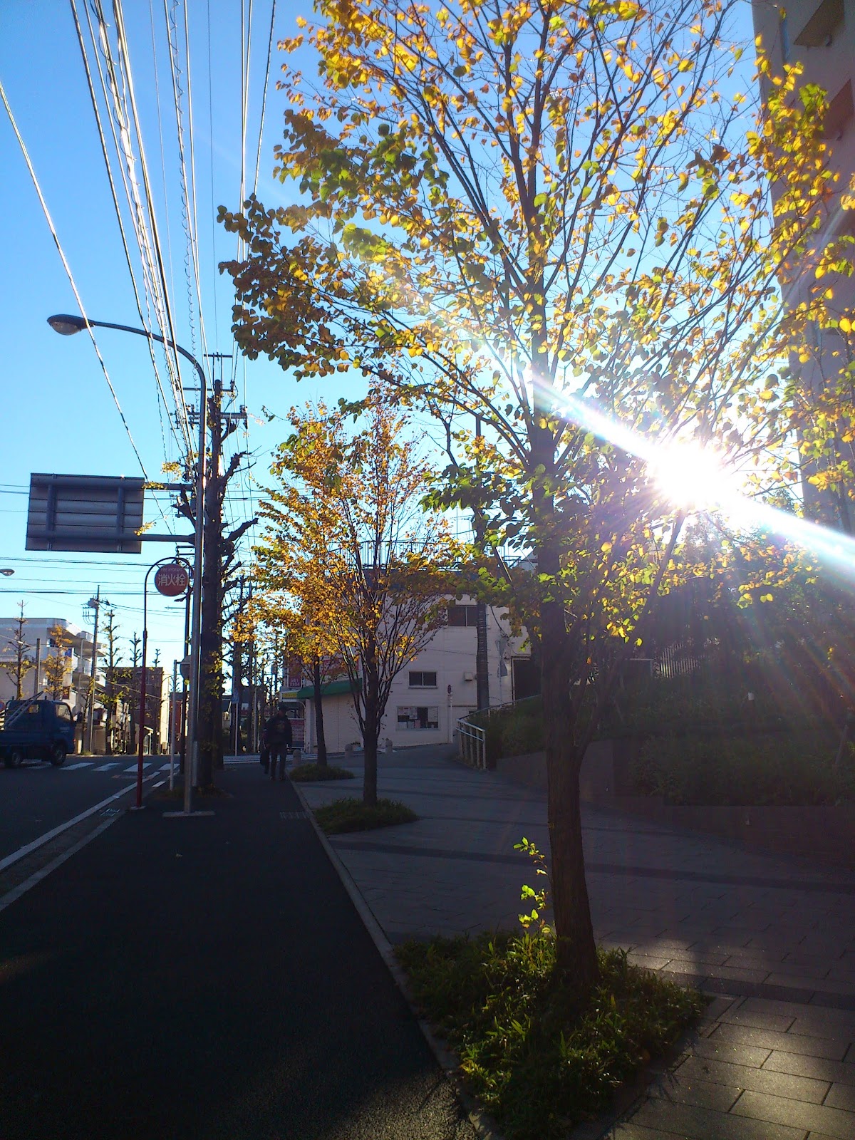 朝日と色づいた木々とで思わずパシャリ。